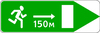 Указывает направление к аварийному выходу и расстояние до него.